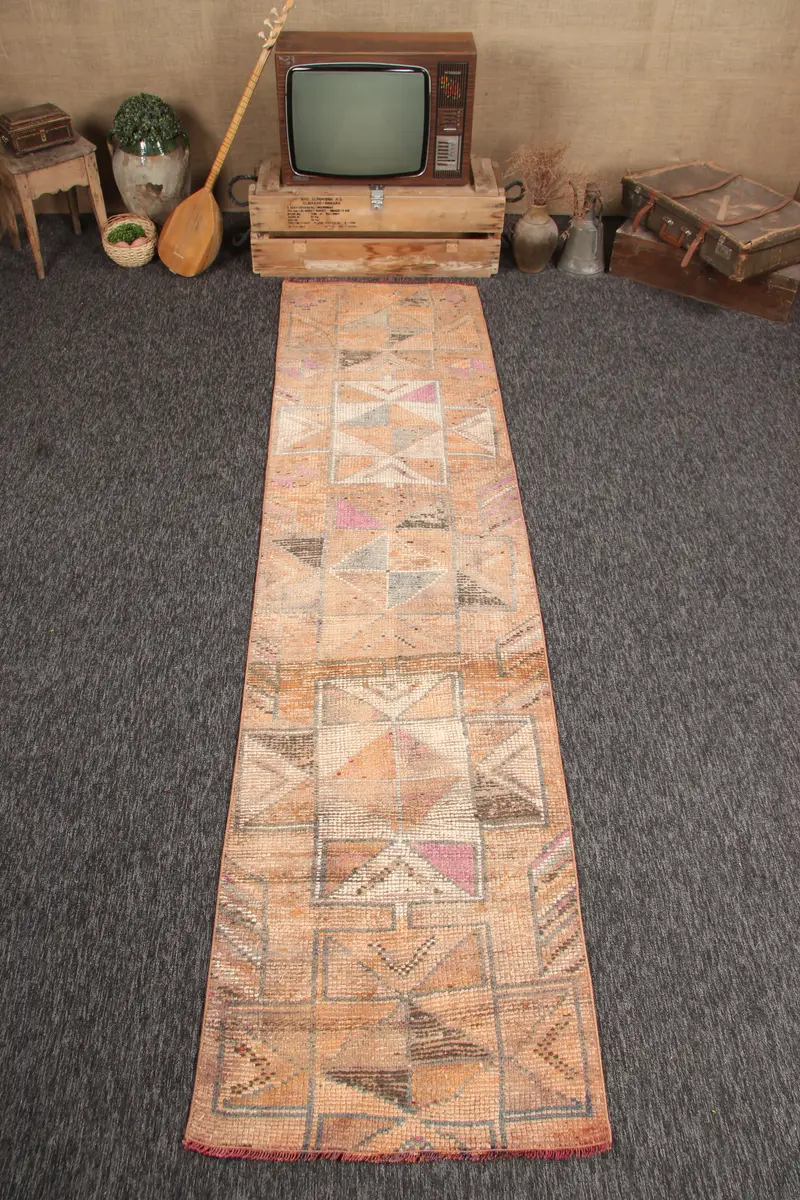 2.5x10.2 ft Halı, Türk Vintage Küçük Halı, Turuncu Herki Halı