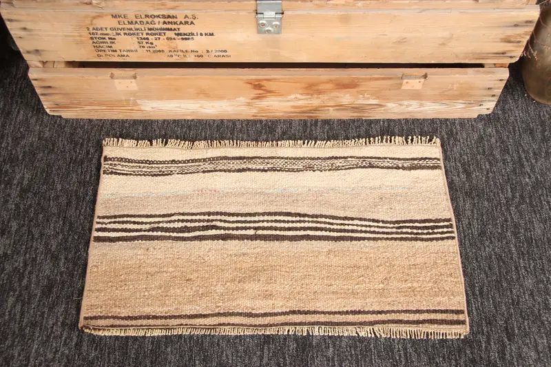 2.5x1.3 ft Halı, Türk Vintage Küçük Halı, Bej Kilim Halı