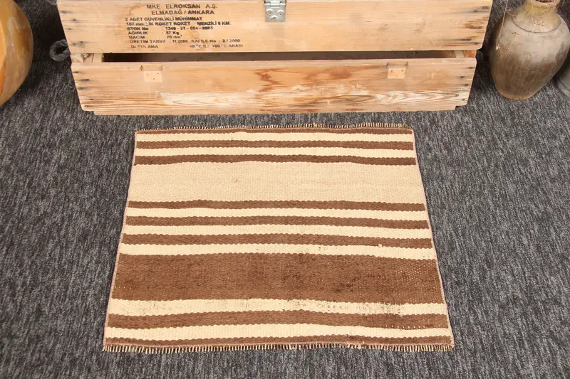Vintage Türk Halısı, 2.3x2.1 ft Kilim Halı, Bej Çizgili Halı