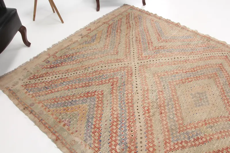 Türk Vintage Büyük Halı 6.4x10 ft, Kahverengi Hayvan Baskılı Yün Halı