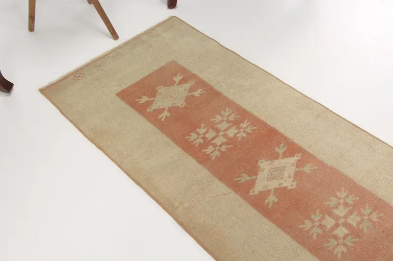 2.1x9.2 ft Türk Vintage Halı, Yolluk Halı, Kahverengi Turuncu Soyut Yün Halı