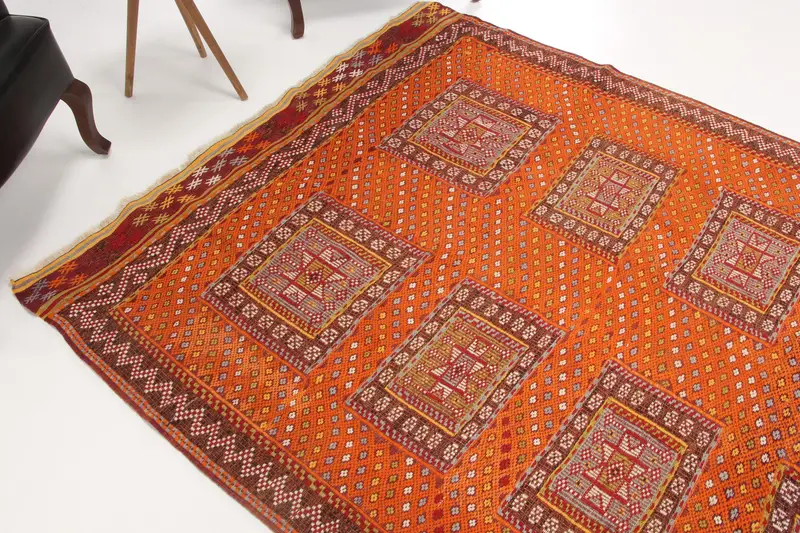 Türk 5.6x7.7 ft Halı, Vintage Halı, Turuncu Çiçekli Halı Yün