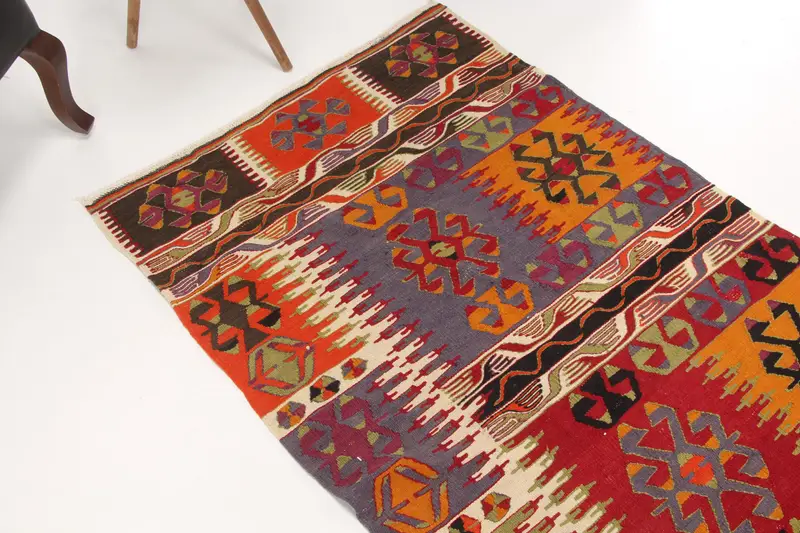 Vintage Halı, Yolluk 3x7.5 ft Halı, Kırmızı Çiçekli Halı