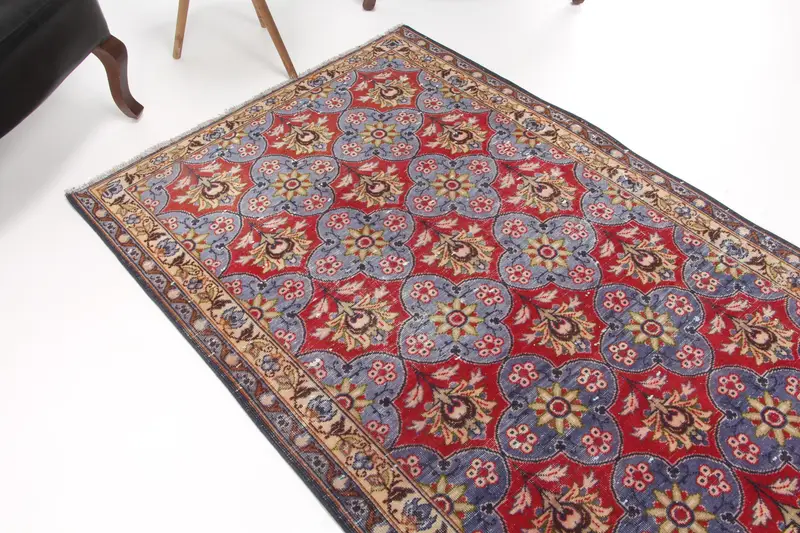 Halı, 4.1x10 ft Vintage Halı, Kırmızı Kareli Halı Yün