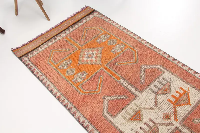 Türk Halısı, 2.8x10.9 ft Vintage Halı, Turuncu Beyaz Fas Yün Halısı
