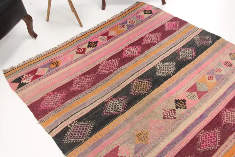Vintage Türk Halısı, 5.3x7.4 ft Halı, Kırmızı Pembe Fas Halısı