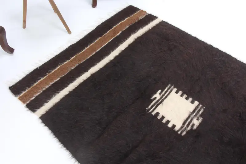 4x5.6 ft Halı, Türk Vintage Halısı, Kahverengi Patchwork Yün Halı