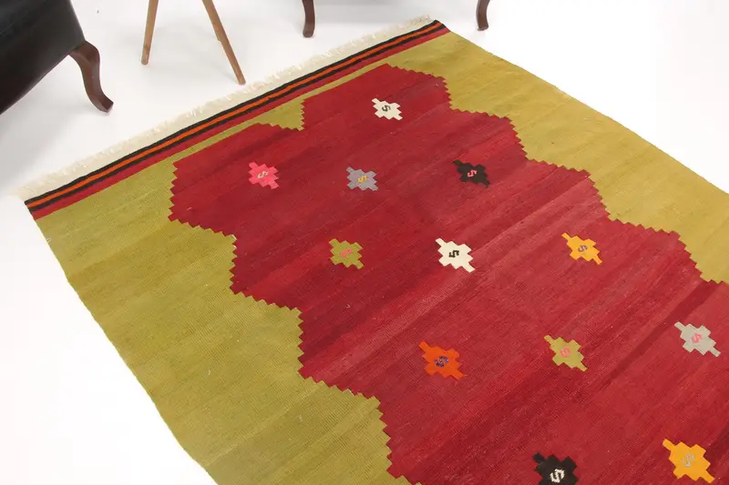 5.3x8 ft Vintage Halı, Büyük Türk Halısı, Kırmızı Bitki ve Ağaç Halısı