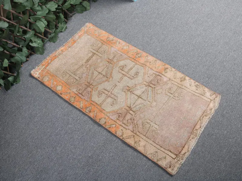 Vintage Türk Halısı 1.5x2.8 ft (46x85 cm), Yeşil Güneybatı Yün Halı