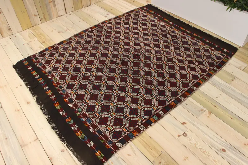 Türk 5.3x7 ft Halı, Vintage Halı, Kırmızı İran Halısı Yün