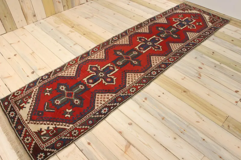 Vintage 2.6x9.4 ft Halı, Runner Türk Halısı, Kırmızı Ombré Yün Halı