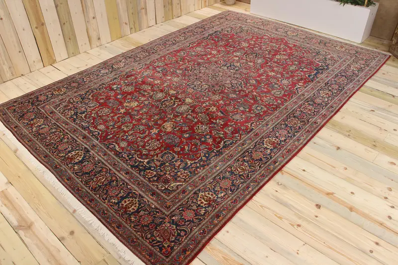 7.3x11 ft Vintage Türk Halısı, Büyük Boy Halı, Kırmızı Yün Halı