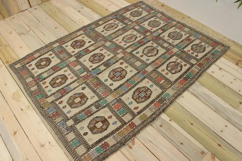 4.2x5.7 ft Halı, Vintage Türk Halısı, Kahverengi Çiçekli Yün Halı