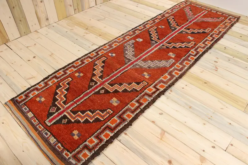 3.1x10.2 ft Halı, Vintage Türk Halısı, Kırmızı Yün Halı