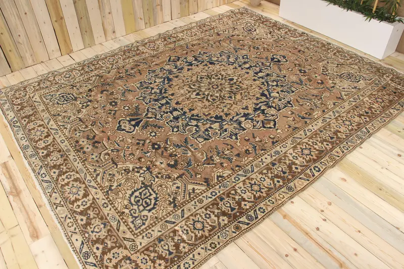 Türk Halısı, 9.1x11.6 ft Büyük Boy Vintage Halı, Kahverengi Mavi İkat Halı