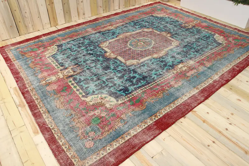 Türk Büyük Boy Halı 9x11.9 ft (273x363 cm), Vintage Mavi Ombré Halı