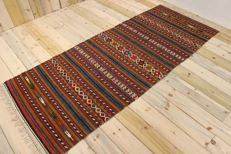 Türk Vintage Vurgulu Halı 3.1x7.7 ft, Kırmızı Yün Halı
