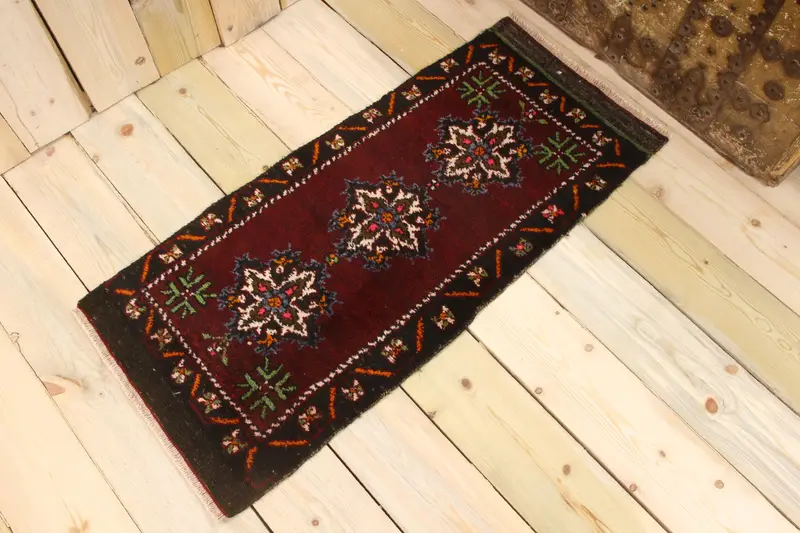 1.5x3.3 ft Vintage Halı, Kilim, Kırmızı Soyut Halı Yün