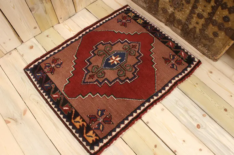 Türk Halısı, 2.3x2.9 ft Küçük Halı, Kırmızı Kareli Yün Vintage Halı