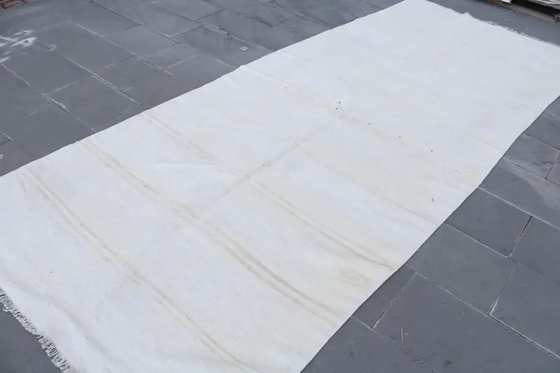 Türk Vintage Büyük Halı 4,7x11,7 ft (144x358 cm), Beyaz Kamuflaj Halı
