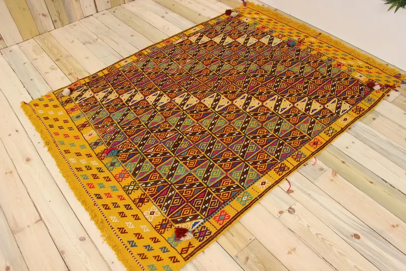 Türk Vintage Halı 5.1x6.9 ft (154x209 cm), Sarı Kamuflaj Yün Halı
