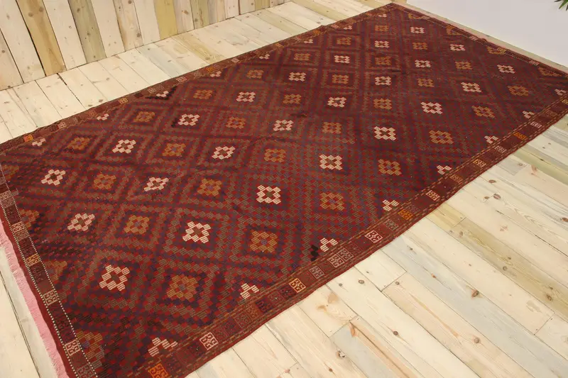 Vintage Büyük Halı 5.8x10.8 ft (178x329 cm), Kırmızı Soyut Türk Halısı