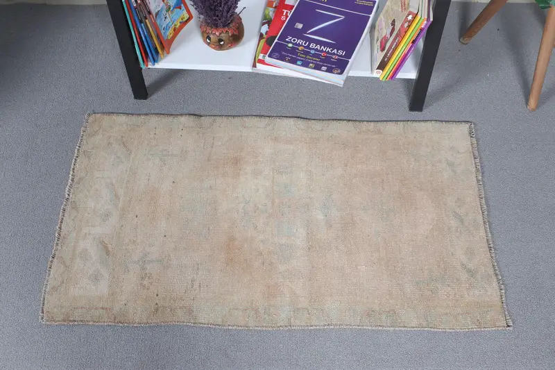 Türk Küçük Halısı 1.8x3.1 ft (54x93 cm), Vintage Kahverengi Puantiyeli Halı