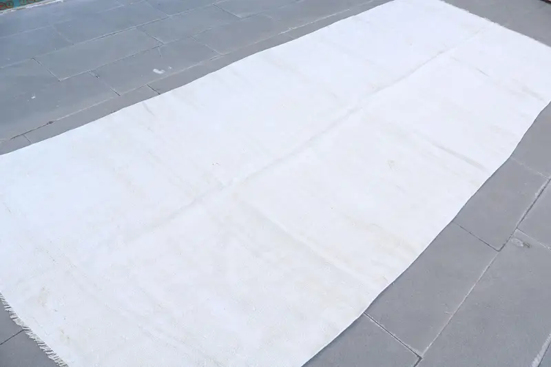 4.8x12.2 ft Vintage Halı, Türk Halısı, Beyaz Puantiyeli Yün Halı