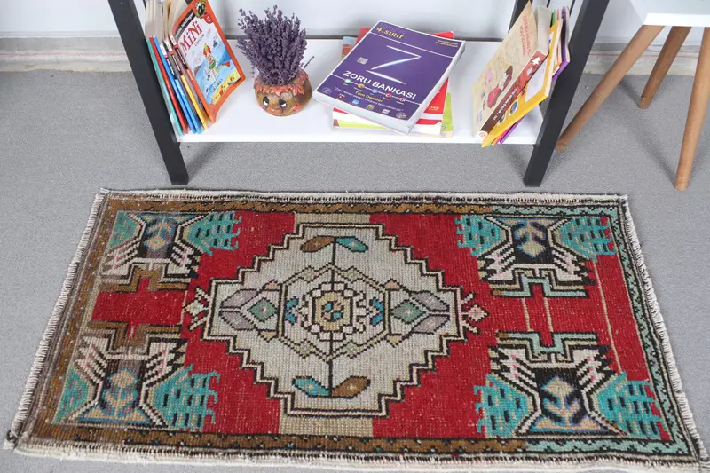 Vintage Halı, 1.7x3.2 ft Küçük Halı, Kırmızı Mavi Yün Halı