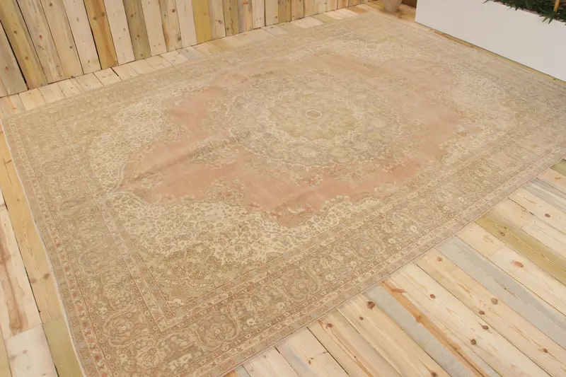 Vintage Türk Büyük Boy Halı 8.4x11.5 ft, Bej Yün Halı