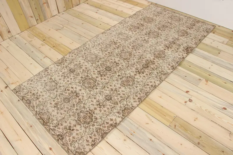 Türk Halısı, Alan 3.7x8.2 ft Vintage Halı, Kahverengi Gri İkat Yün Halı