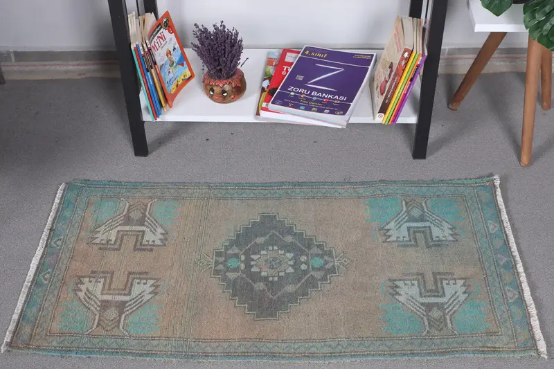 Vintage Türk Halısı 1.6x3.3 ft (50x101 cm), Mavi Yün Halı