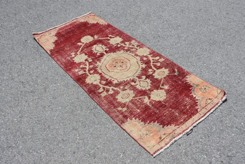 2.7x6.4 ft Vintage Accent Halı, Türk Kırmızı Soyut Halı