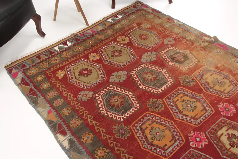 5.3x12.7 ft Büyük Türk Halısı, Vintage Halı, Kırmızı Kahverengi Bitkiler ve ağaçlar Yün Halı