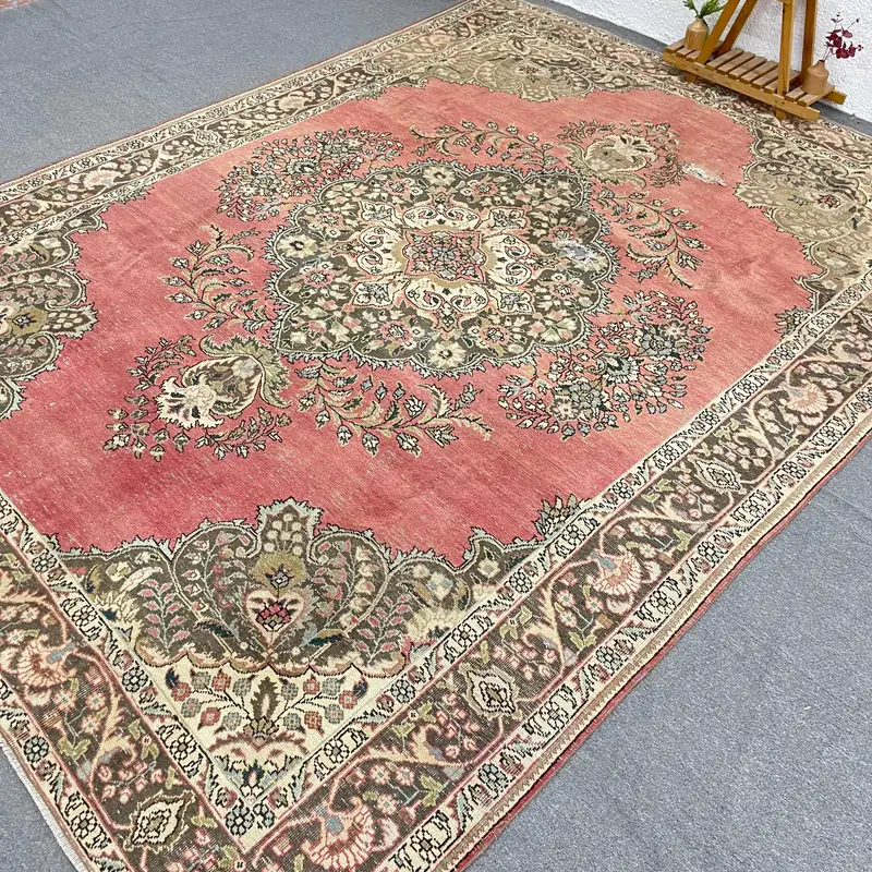 Vintage Büyük Boy Halı, 9.2x12.2 ft Türk Halısı, Kırmızı Çiçekli Yün Halı