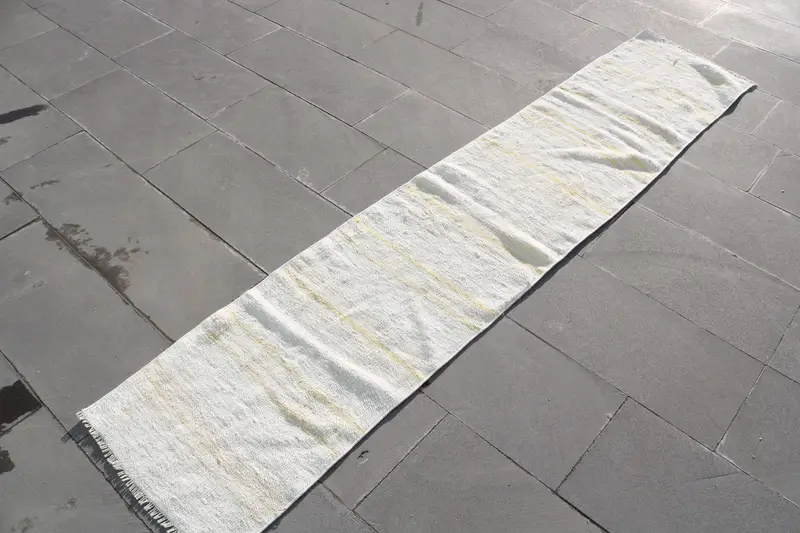 1.6x8 ft Halı, Türk Vintage Halısı, Beyaz Yün Halı