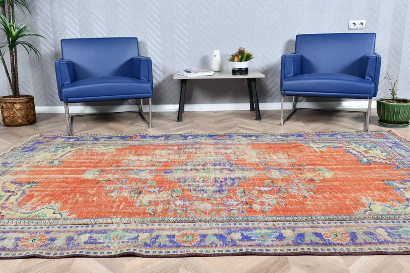 Vintage Türk Halısı 5.4x9.3 ft (164x282 cm), Turuncu Soyut Yün Halı
