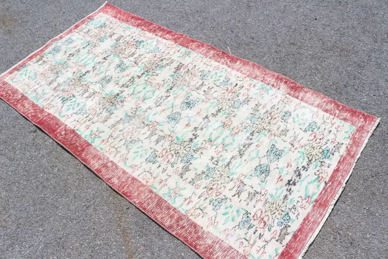 3.4x6.5 ft Vintage Accent Halı, Kırmızı Beyaz Türk Masif Yün Halı