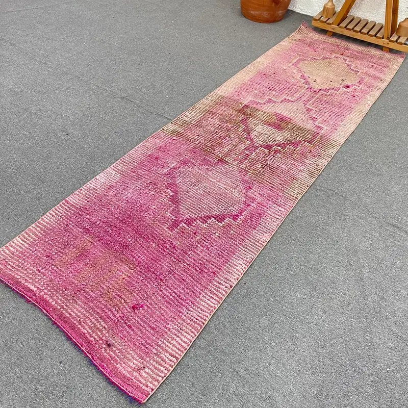Türk Halısı, 2.7x9.6 ft Vintage Halı, Pembe Fas Yün Halısı