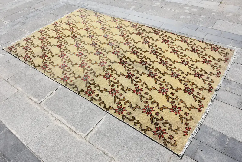 Vintage Halı 4,8x8,3 ft (146x253 cm), Sarı Düz Türk Halısı
