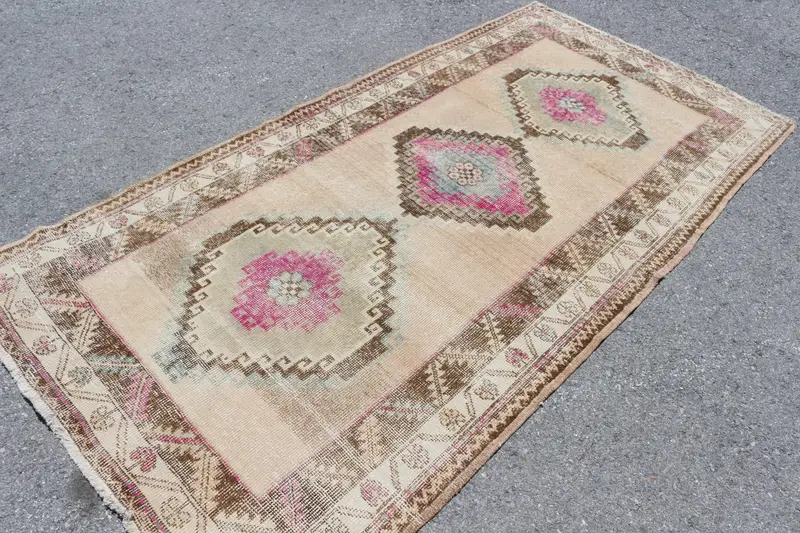 4.3x8.2 ft Halı, Vintage Türk Halısı, Kahverengi Pembe Farsça Yün Halı