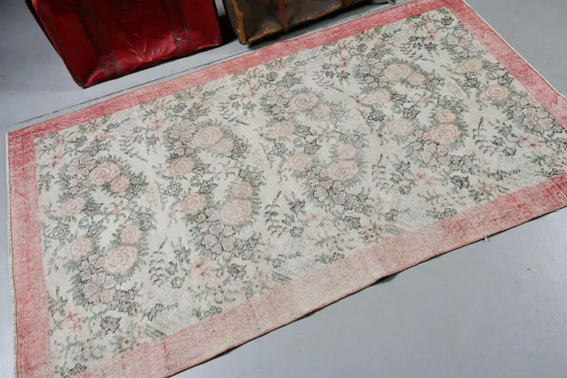 Vintage Halı, Alan 3.8x6.4 ft Halı, Kırmızı Soyut Halı