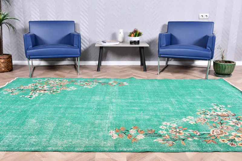 Türk Vintage Büyük Halı 5,8x9,1 ft (177x277 cm), Yeşil Puantiyeli Halı