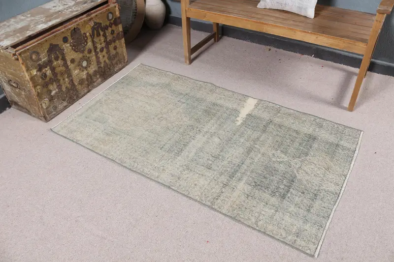 2.9x5.3 ft Vintage Halı, Türk Vurgulu Halı, Gri Çizgili Yün Halı