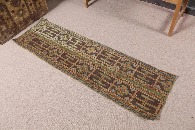 1.6x5.8 ft Türk Halısı, Kahverengi Çiçekli Vintage Halı Yün