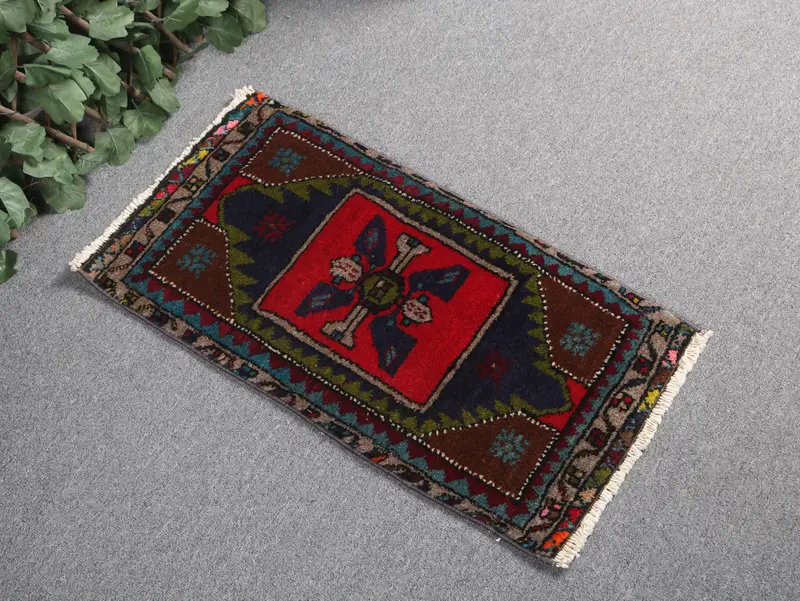 Türk Küçük Halısı, 1.2x2.3 ft Vintage Halı, Kırmızı Ombré Yün Halı