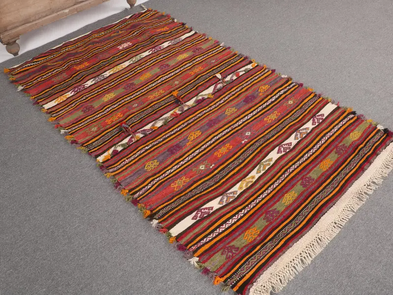 Türk Vurgulu Halı 3.6x6.4 ft (111x195 cm), Kilim Kırmızı Ombré Vintage Halı