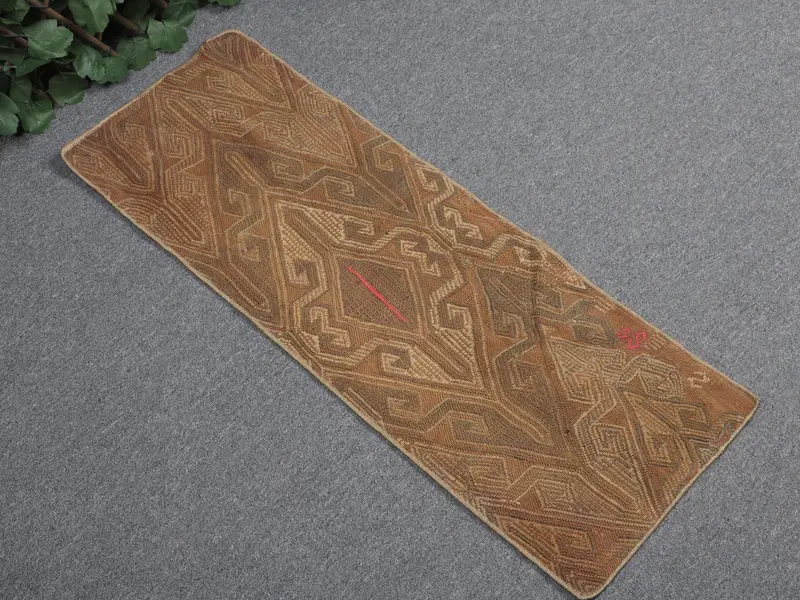 Vintage Türk Halısı 1.1x3.1 ft, Kahverengi Kilim Katı Halı