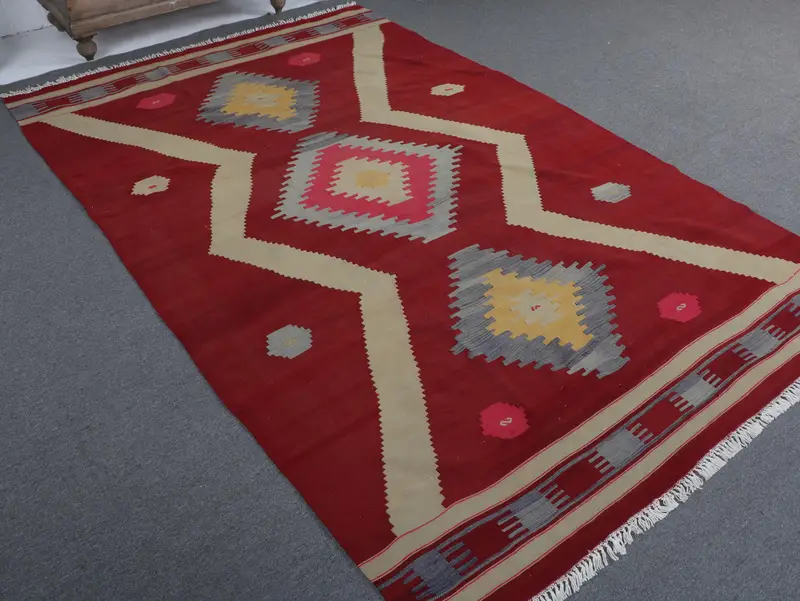 5.5x8.8 ft Eski Türk Halısı, Büyük Halı, Kilim Kırmızı Yün Halı