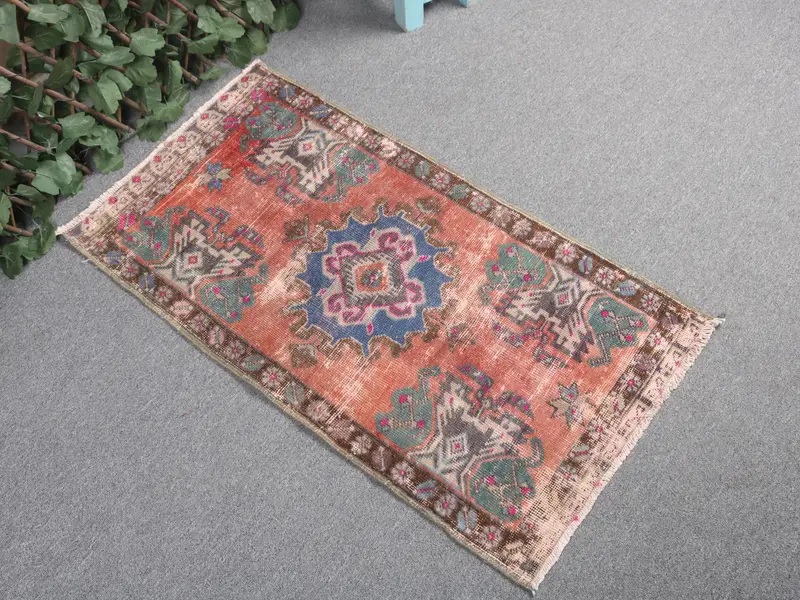 1.8x3.3 ft Türk Halısı, Vintage Küçük Halı, Kırmızı Ombré Yün Halı